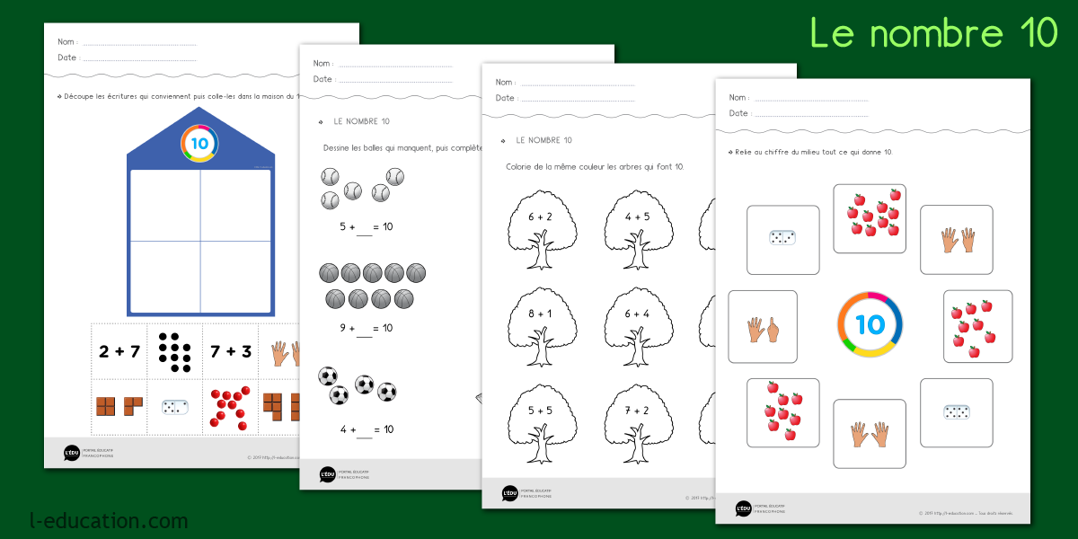 Le nombre 10 Exercices – Compter jusqu’à 10 Fiches à imprimer : Exercices en numérisation pour apprendre les écritures du nombre 10 et apprendre à compter jusqu’à 10.